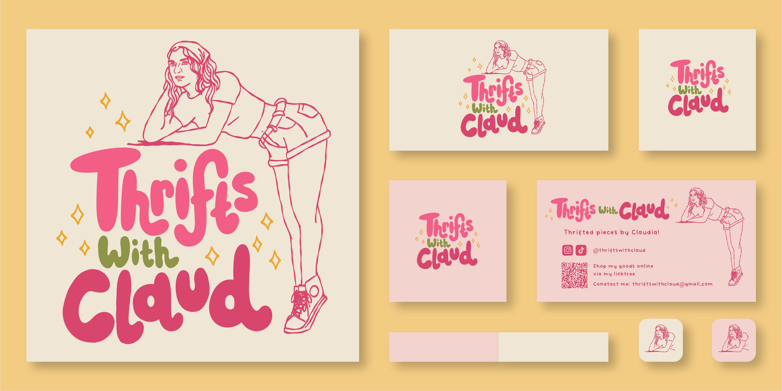 Claudia commissioned me to design a new and improved logo for her small business, Thrifts with Claud—a curated secondhand clothing brand she runs both online and at local markets. She came to me with a clear vision that combined her eclectic fashion sense with my hand-drawn illustration style.